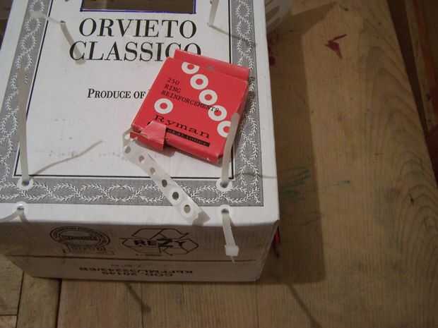 Pues yo utilizaba un lápiz para hacer agujeros en el cartón con cuidado, que luego refuerza el pegado uno de esos sobre el agujero perforado.