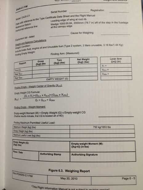 Peso y momento de cada avión son diferentes. Esta información se encontrará en el piloto de funcionamiento manual (POH) específica de los aviones que está volando. Será en el capítulo de peso y equilibrio que es estándar capítulo seis.