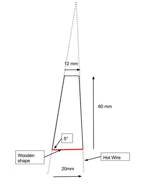-La parte media del ala, se puede utilizar un cortador de alambre caliente normal porque sólo una extrusión recta de madera de la forma (ancho 130 mm).