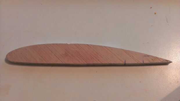 -Para el ala de la cola, sólo recortar su forma con una sierra de cinta o sierra normal. Hacerlo no demasiado gruesa y no demasiado fina (unos 10-15 mm). Rounden su frente y afilar su y con una lija o una.
