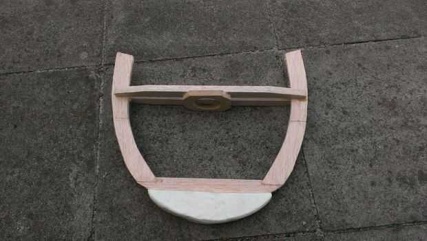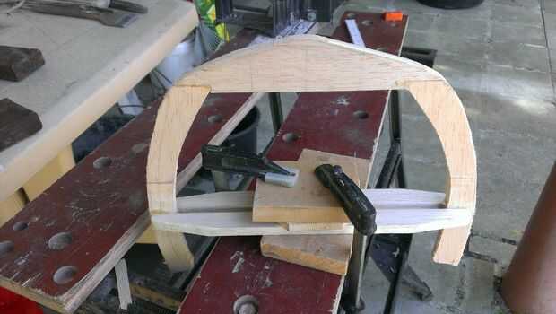 -Luego tomar una placa de madera de balsa y hacer los palillos curvados para hacer el arco en la parte delantera.