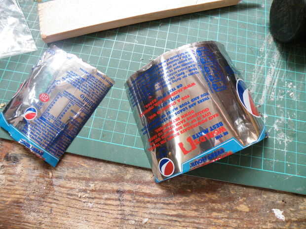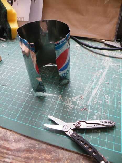 Con el cuchillo (en el Reino Unido lo llamaríamos un cuchillo "Stanley", en los Estados Unidos creo que es un cuchillo de la alfombra), cortar la lata superior e inferior, luego se corta verticalmente con tijeras.