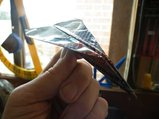 Doblé el plano de la misma manera como hacer un dardo de papel simple, pero toma un poco de esfuerzo extra para hacer los pliegues agudos importantes.