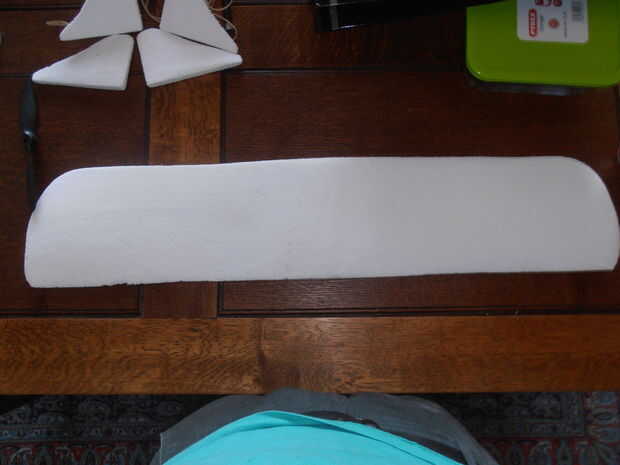 Comience por cortar la placa de espuma de poliestireno en forma de que su ala y la cola se verán como.