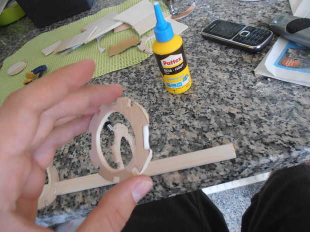 El pegamento de las barras horizontales (8 mm x 5 mm x 420 mm) en el cuerpo.
