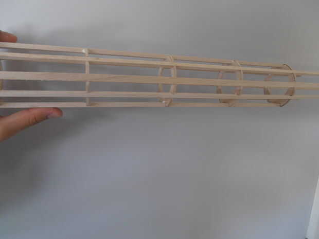 El pegamento de las barras diagonales (5 mm x 5 mm x 480 mm) en el cuerpo.