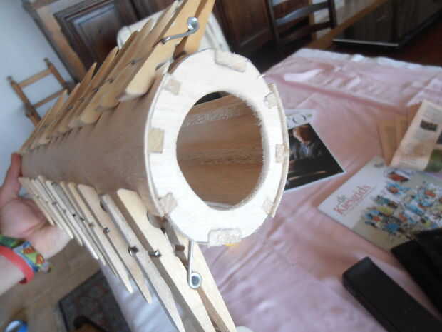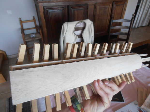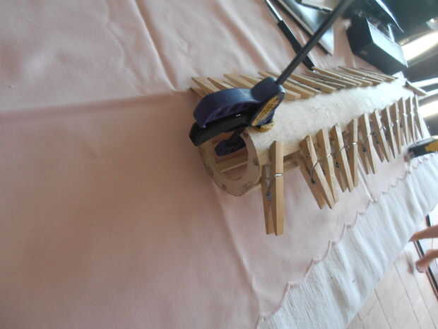 Y junto con pinzas para la ropa hasta su secado.