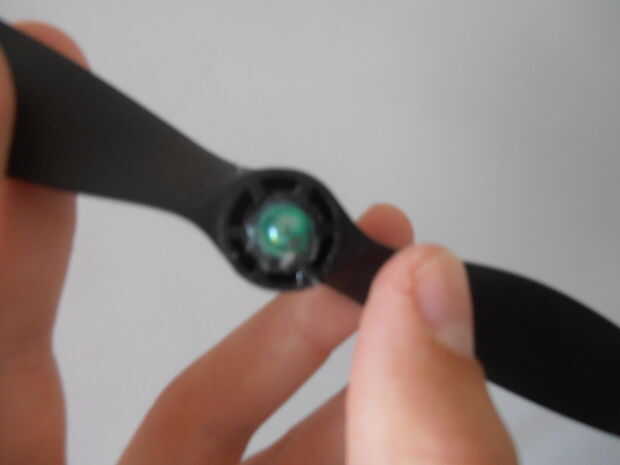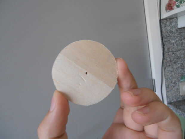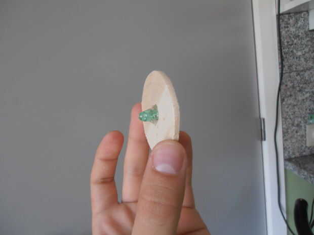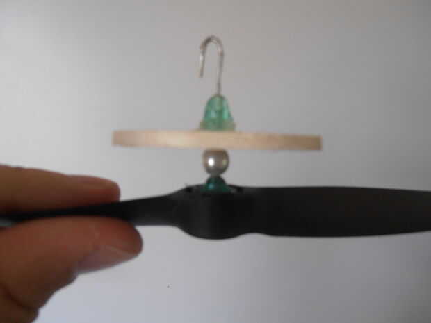 tira adhesiva 1 directamente a la hélice. A continuación pegamento un otras cuentas directamente a la pieza circular de madera de balsa detrás del centro.