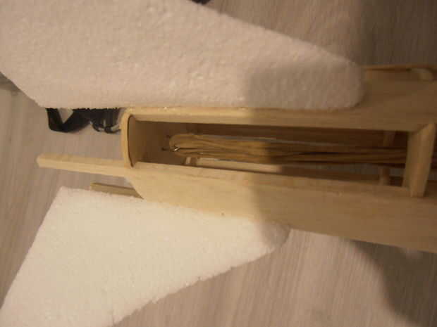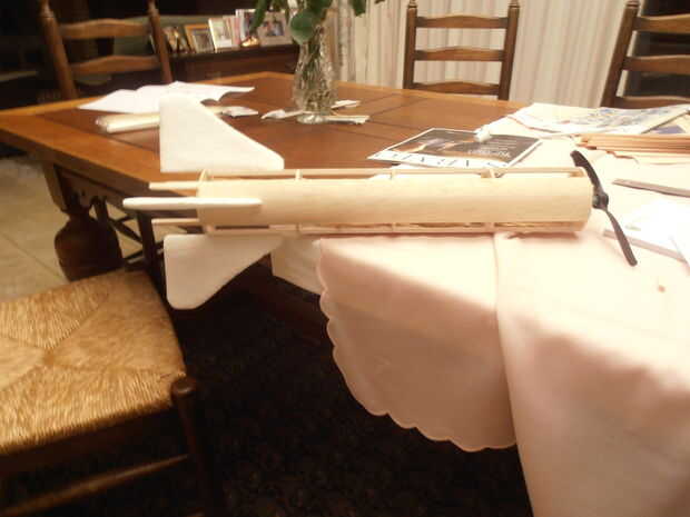 La cola: pegamento las 4 piezas de usted de la cola al final de su avión, así que todavía hay 50 mm que no se pega en el cuerpo.