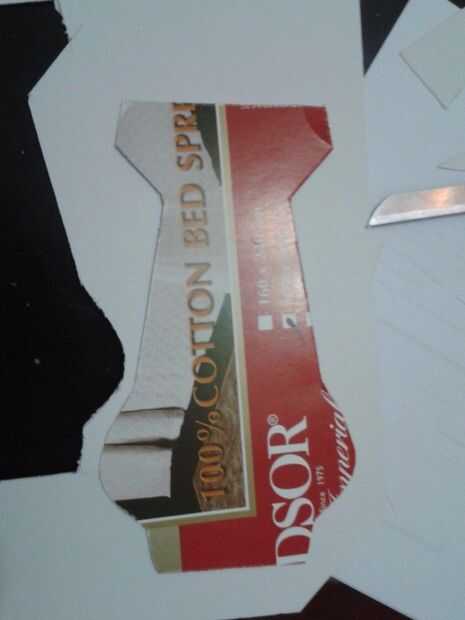 El espejo plano se corta y se utiliza para dibujar la silueta de avión doble en una hoja de cartón.