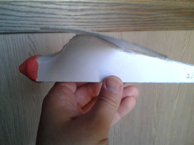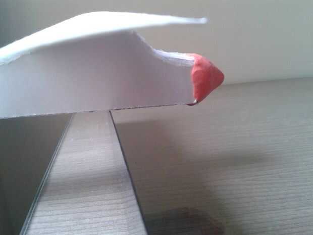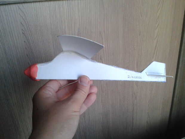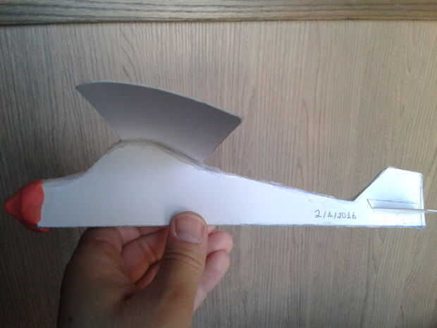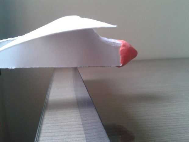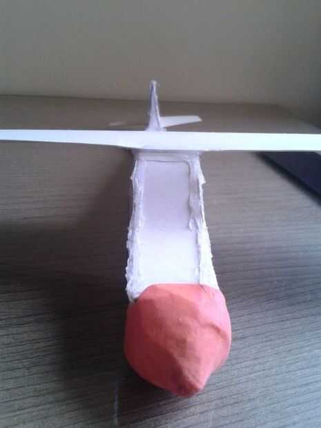El avión está listo, todavía tenemos que ajustar la ubicación de su centro de gravedad. Como se dijo antes, la corona debe colocarse bajo el ala en el centro del fuselaje. Enfoque más científico, compruebe: