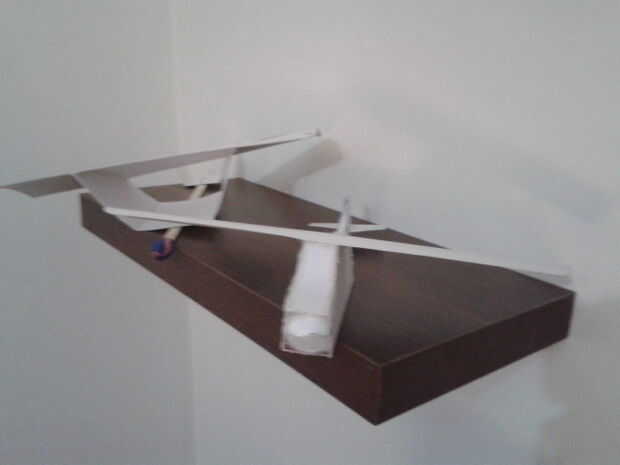 Puede hacer aviones más simples usando el mismo procedimiento. El pequeño avión en las figuras arriba tomó 3 horas de trabajo y el aeroplano grande tomó cerca de una hora de trabajo, y todos están volando (como un velero). Aún tengo que añadir un motor con una hélice y el circuito de control con una batería. Prestar atención que la ubicación del piñón debe permanecer bajo el ala, incluso después de agregar pesos adicionales. Agregar o quitar partes de la arcilla con el fin de mantener la situación de la corona.