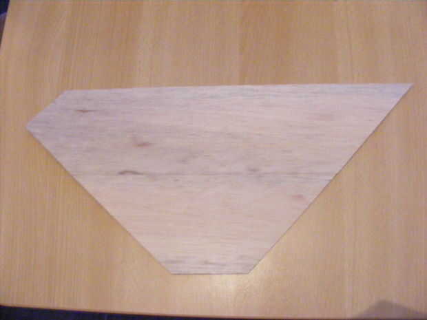 Voor de vleugels heb ik eerst 2 platina uitgesneden en de vorm van een driehoek (als er geen grote platina balsa te koop zijn koop je lange stroken en plak je este aan dirección.