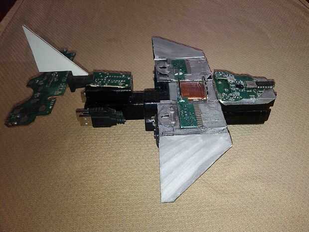 un chorro intergaláctico sin alas con una mezcla de tecnología humana y alienígena.