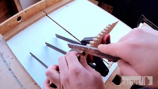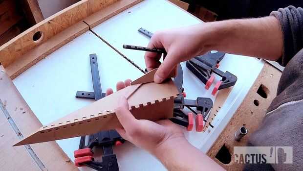 Corte fingerjoints con un jig pequeño Hanon para armar cada parte del ala. Hay un montón de tutoriales sobre cómo hacer las articulaciones de los dedos para que no se cubre aquí, pero es muy simple. En mi caso elegí un ancho de dedo que mach el grueso de 2 capas de MDF por lo que terminan sobresaliendo como cubos, pero usted puede elegir cualquier tamaño de dedo.