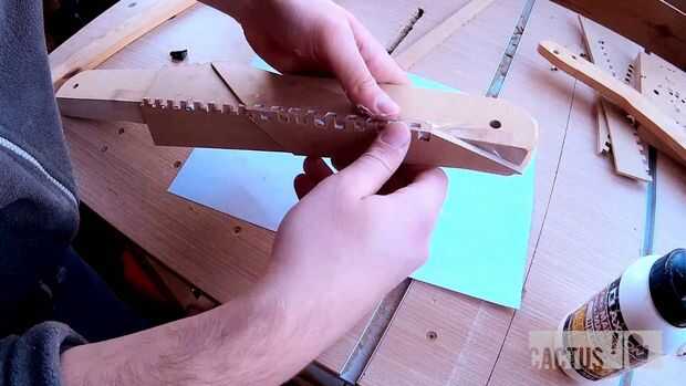 Una vez secas las alas, era momento para unirse a las mitades del dos avión, esto fue un poco más complicado. He utilizado la misma plantilla para mantener el avión mientras corta un plano lateral en cada plano la mitad por lo que podría ser pegados. No utilizar las articulaciones de los dedos de esta costura central porque habría sido demasiado largo puesto que es un ángulo muy agudo.