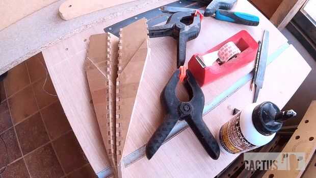Corté un trozo en el Hanon para que coincida con el ángulo que quería usar como plantilla para el pegamento hacia arriba. Muy simple :)