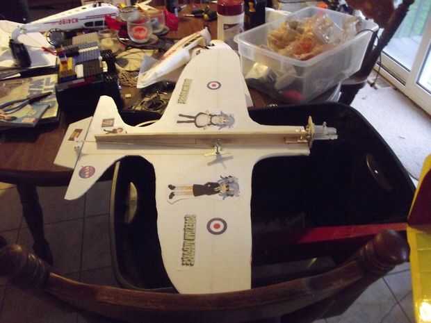Este es el proceso de montaje. Primero usted corta los materiales en forma de acuerdo a los planes. Luego pones las piezas juntas, como el cuerpo, cola y así sucesivamente. Arena hacia abajo y ya tienes un plano.
