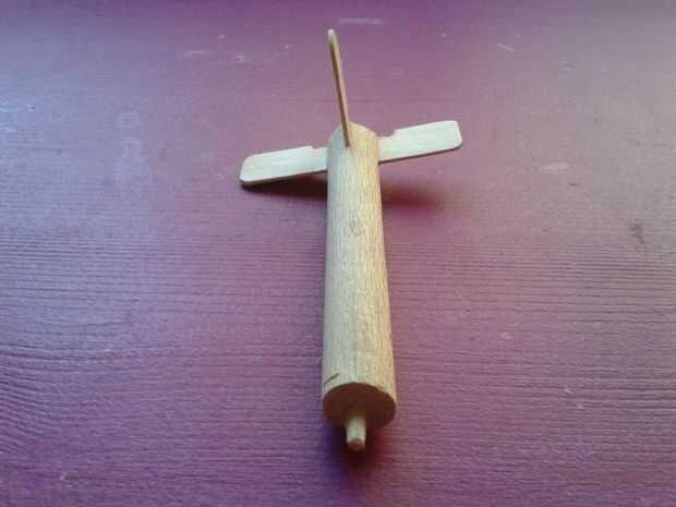 4 - hacer un pequeño agujero en la "nariz" del cuerpo para poner un 1/2 pulgada del palo de madera pequeño (para fijar la hélice más adelante)