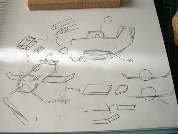 Paso 1: Aletas traseras Prender las piezas de madera allí y unirlo todo, esperar a que seque.Paso 2: alas Lo mismo como antes, sólo que esta vez puede que necesite doblar las alas hacia arriba con algo para apuntalar, pegar las ruedas.Paso 3: cuerpo