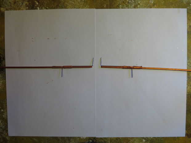 Pegue los cables con 2.5 cm-final - a través de las varillas de balsa, ten cuidado porque las varillas se rompen fácilmente. Asegúrese de que el final cm 2 supere la barra basa, o bien tus alas vas a tener problemas de aleteo. Pegue los cables en su lugar y strenthen los extremos con cinta de papel.