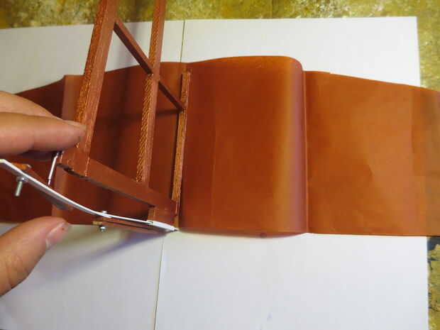 Utilice un palillo del pegamento para pegar la balsa superior del cuerpo en el centro del ala-tejido, como se muestra en la imagen.