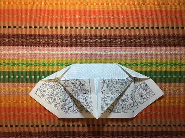El ángulo de plegado de la esquina es un poco arbitrario, pero usted puede ver una línea recta del triángulo superior e inferior después del doblez.