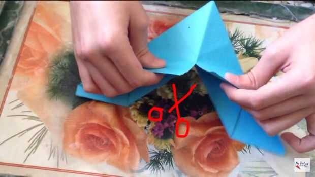 Corte de la línea media entre la base y la punta de los triángulos pequeños