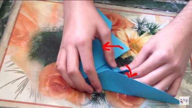 Ahora doblar las trianles dio lugar a dos para bajo los pliegues que hiciste en el paso 5