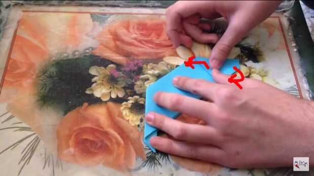 Finalmente doblar el extremo del ala a la línea de la frontera exterior de la esquina de las alas (o la punta si no había ninguna esquina de 90 º formada) con la extremidad interna de la parte inferior del ala.