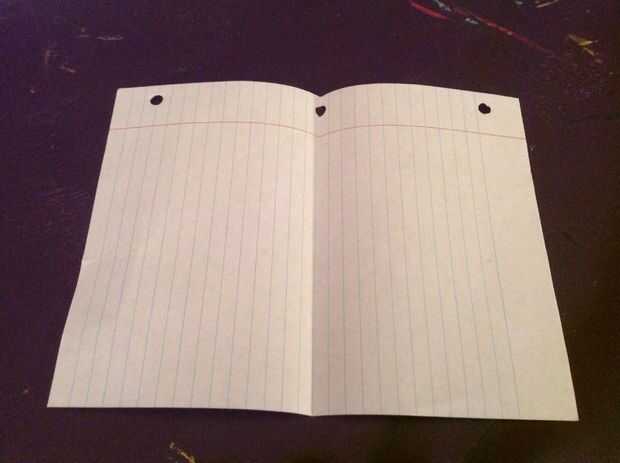 tomar una hoja regular de nota libro papel y dóblalo maneras cortas. comúnmente conocido como "estilo perrito caliente" luego abrirlo hacia arriba
