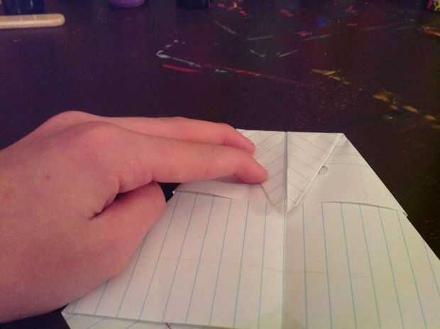 tomar la nariz del avión, luego doble hacia abajo. Luego, doblar los dos lados juntos