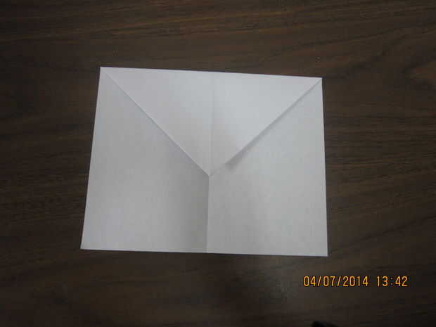 El punto superior del triángulo y dóblelo hacia abajo como la fotografía le indica que