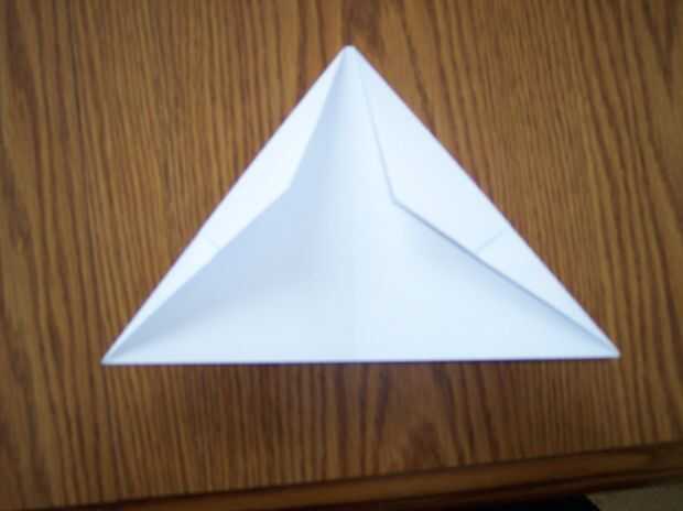 Abrir las aletas delanteras y doblar el borde exterior hasta el centro.  Doblar la aleta trasera en.  Repita con las aletas en la parte posterior.
