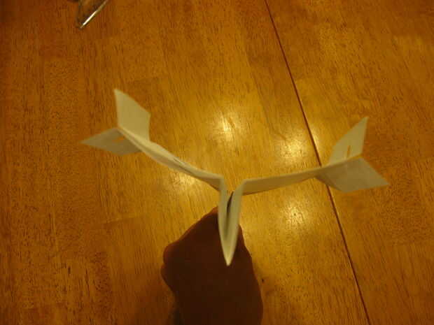 este es uno de los mejores aviones de papel que he hecho. Es moderadamente sencillo doblar y un volante muy bueno. Es un planeador suave con un frente "plano" por lo que si se cuelga alguna vez el frente no arruga para arriba como lo haría en un