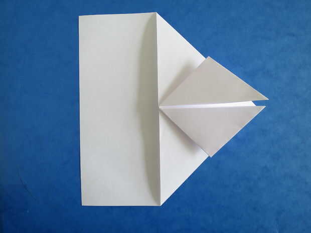 Paso 1: Se necesita un pedazo de papel doble papel en formas largo medio, abrir el papel y doblar en los dos coners superior.Paso 2: Las esquinas de dos que dobla solo doble hacia abajo y voltear el papel y doblar por la mitad rip luego de por lo men