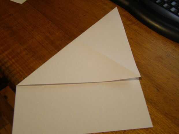 Voltee el papel otra vez y presione el centro de las líneas y a continuación, llevar hacia arriba las esquinas así que es algo parecido a un triángulo.