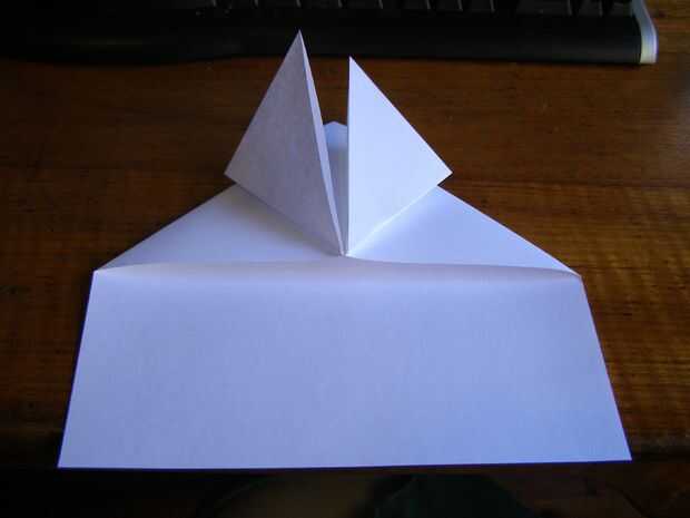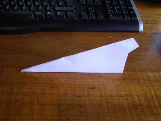 Paso 4: Doblar las alas por la mitad hacia abajo, como con cualquier papel de plano y los suyos deben mirar como lo que es en la foto 5.