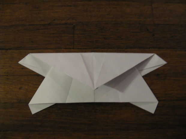 doblar la punta hasta la intersección del borde posterior y pliegue central