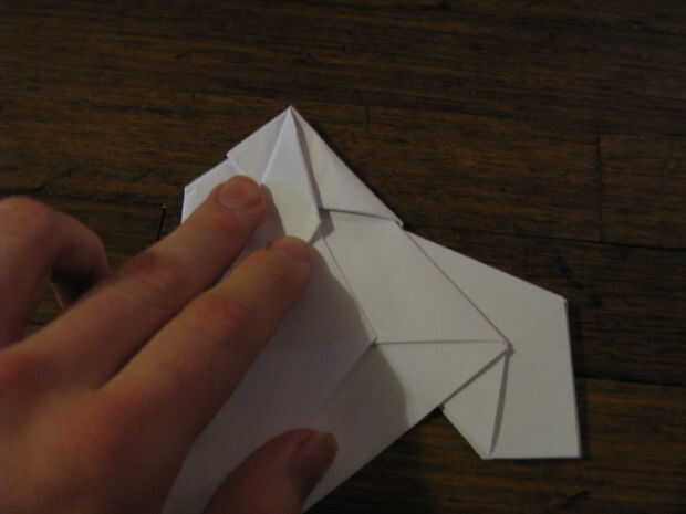 la esquina delantera del ala va ligeramente más allá del doblez del paso 8