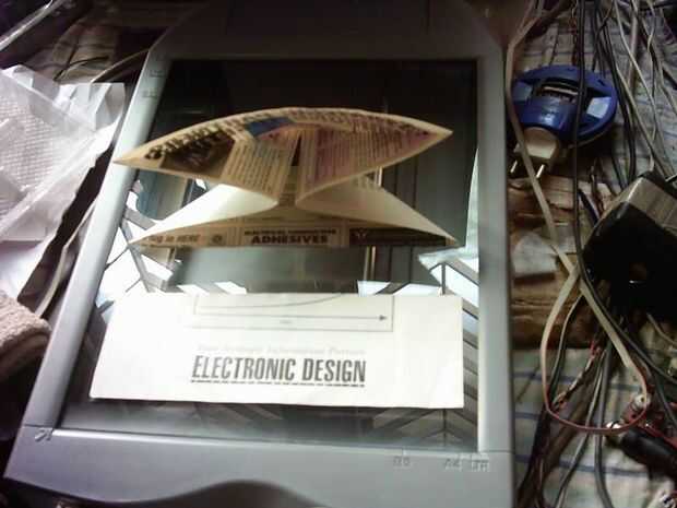 Las dos imágenes muestran el papel en mi escáner y la fotografía tomada por el explorador. Es una gran manera de instructables de documento, ya que el escáner se encarga automáticamente de toda iluminación y encuadre y exposición.