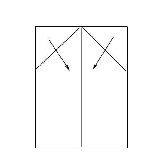 El primer paso es tomar un 8.5 x 11" papel y dóblalo por la mitad para formar un pliegue de la línea media. Luego tomar la parte superior del papel y doblar 2 triángulos en el centro (ver diagramas) para crear el pliegue de ala principal 1 º de la parte delantera del avión.