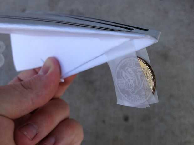 Coloque una moneda en la parte delantera del avión con cinta. Prueba de la colocación de los contrapesos por la moneda en movimiento de adelante hacia atrás. También puede ser útil tratar diversas monedas tamaño. Después de algunas pruebas encontré que usar casi una cuarta parte en el muy delantero del avión equilibrado el aeroplano lo mejor para mí.