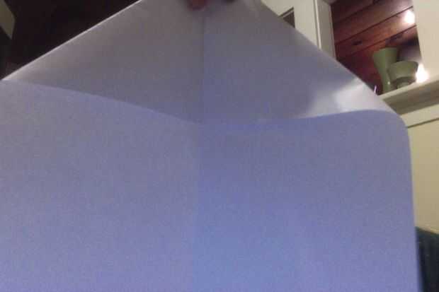 a continuación abrir el pedazo doblado de papel y doblar un triángulo limpio en cada esquina superior para que los lados más cercanos al centro son contra el pliegue por la mitad.