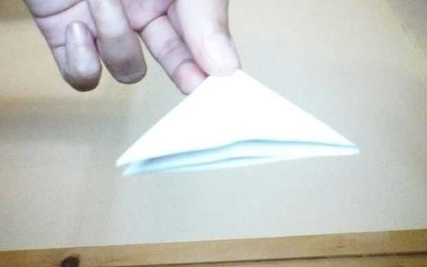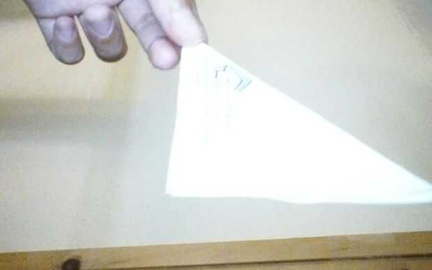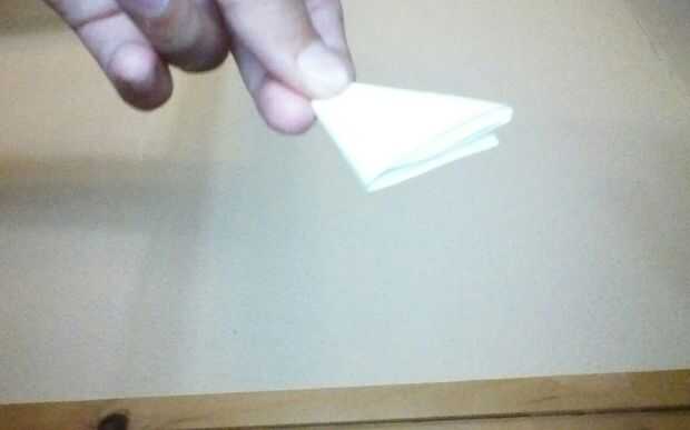 Tomar un papel y doblar como en las fotos. Asegurarse de que se doblar en triángulos sólo tres veces. Despliegue y convertirla en una forma flower-ish.