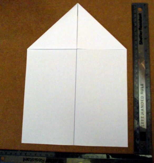 Con su nueva pieza perfectamente arrugada de papel de A4 en posición de retrato nuevo, con el pliegue en la parte inferior abierta como un libro, tomar una de las esquinas superiores y pliegue en el pliegue de centro que acaba de hacer para que el borde superior del papel está ejecutando a lo largo del pliegue. Otra vez, asegúrese de que se alinea precisamente y puntuación de agradable y fuerte como antes.
