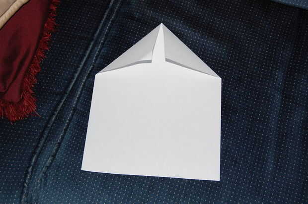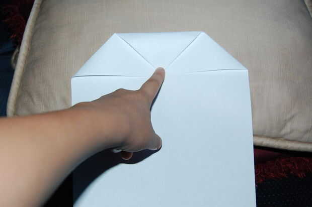 abrir como un avión de papel normal, doblar las esquinas de la parte superior 2 y doblar el extremo superior hasta la parte inferior de la de las 2 esquinas.