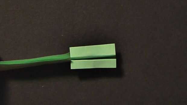 13. doblar la tira de papel por la mitad como un pliegue de perrito caliente.