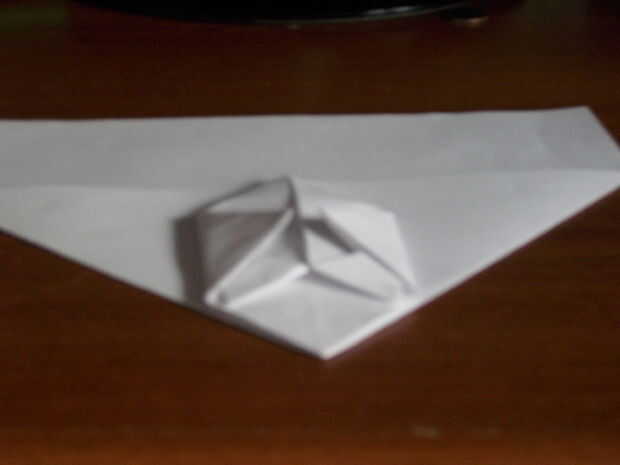 Ahora, tomar los puntos del triángulo [sueltos] y doblarlas a la mitad.