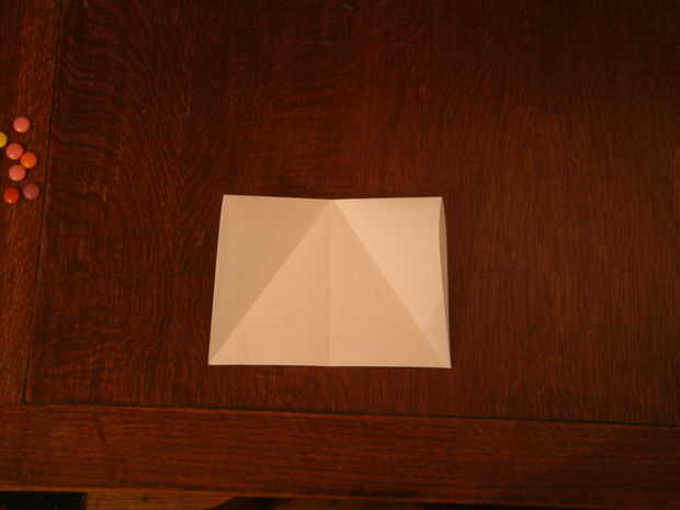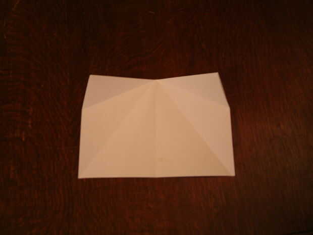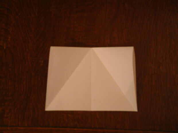 3. ahora tienes que doblar el papel a lo largo de una línea desde la parte superior del pliegue central en la parte inferior.